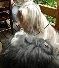 わんこ達がみな親戚?関係のお集まりだそうで、3匹だっこされてるワンコは、
