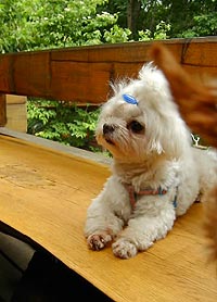 ソレイユ君、ウッドデッキは気持ちいいかい?