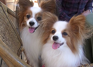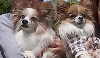 パピヨンのバケット君(6.5歳)、と凛ちゃん(3歳) とっても美男、美女のお二人?でした〜