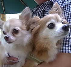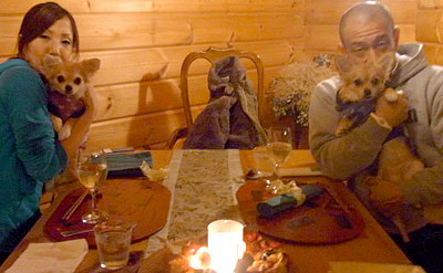 | だっこのパピヨンは ビビちゃんとミントちゃんです。お食事中も とても静かでいい子達でした。 |