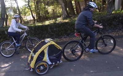 ブルテリアのデミ君 今日は豪華な自転車のサイドカーでご来店でした。