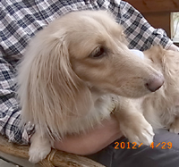 MDの めぐちゃんとムックちゃんパパに抱っこで幸せそう。